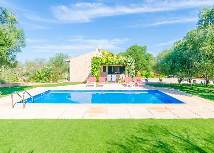 Willa Sa Teulada dysponuje tarasem z widokiem na ogród, 53 min jazdy od lotniska Palma de Mallorca.